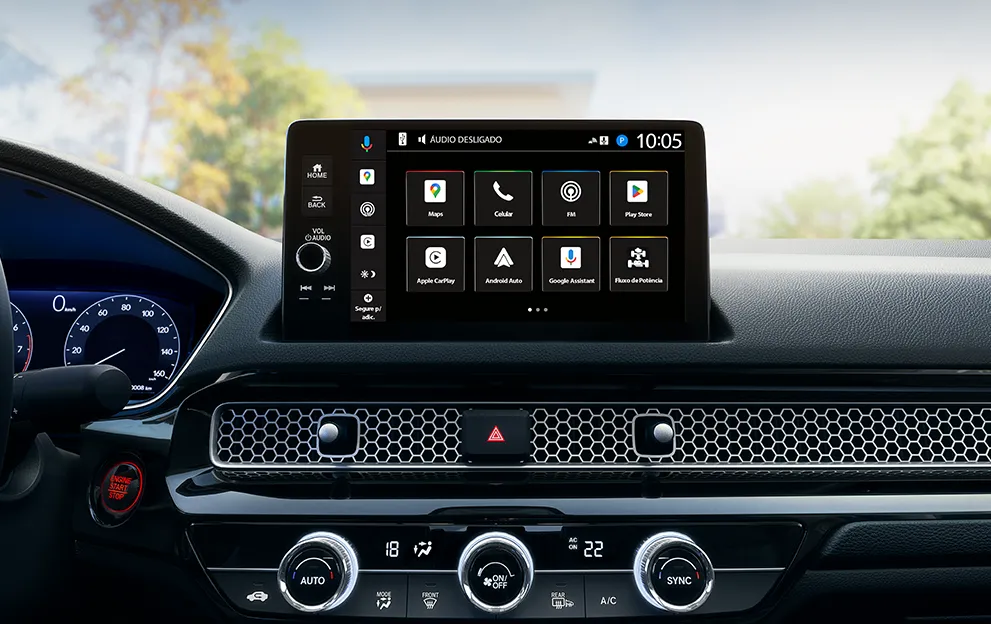 Através da conexão entre o aplicativo e o Civic Híbrido é possível executar controles remotos, obter informações e se relacionar com a Honda. Conectividade que aproxima ainda mais o usuário de seu veículo.